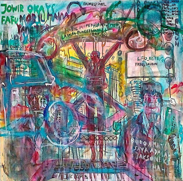 Ahmad Rifqi aka Michael Rodion Raul Robenz My name is Ahmad Rifqi Ardian, born in Jakarta, March 12, 1996, currently domiciled in South Tangerang. Bachelor degree at FSRD ITB 2014 - 2019. Artwork does not depend on a particular theme. I pay more attention to the universal issue of what humans do, and from there to give something different to this life through art style. However, my art style has evolved, and you could say that evolution is similar to the history of world art: in college, the universality that was concerned with was a very general one, namely the universe. I intend to simplify the human view of seeing life through art in the form of painting as a medium. It is a creative process that occurs throughout college until graduation, namely abstraction. This evolution really represents the evolution from romanticism, impressionism, to de stijl. After graduation, what is realized is relevance. Are abstractions and the universe relevant to me and life? Modernism is finally faced with rejection, namely Post-modernism. Abstract painting that became my previous style is not satisfying enough to talk about more relevant life problems. That's where my current art style was born, returning to the figurative and doing semiotics-plays to it, like New Realism and Neo-Expressionism.
