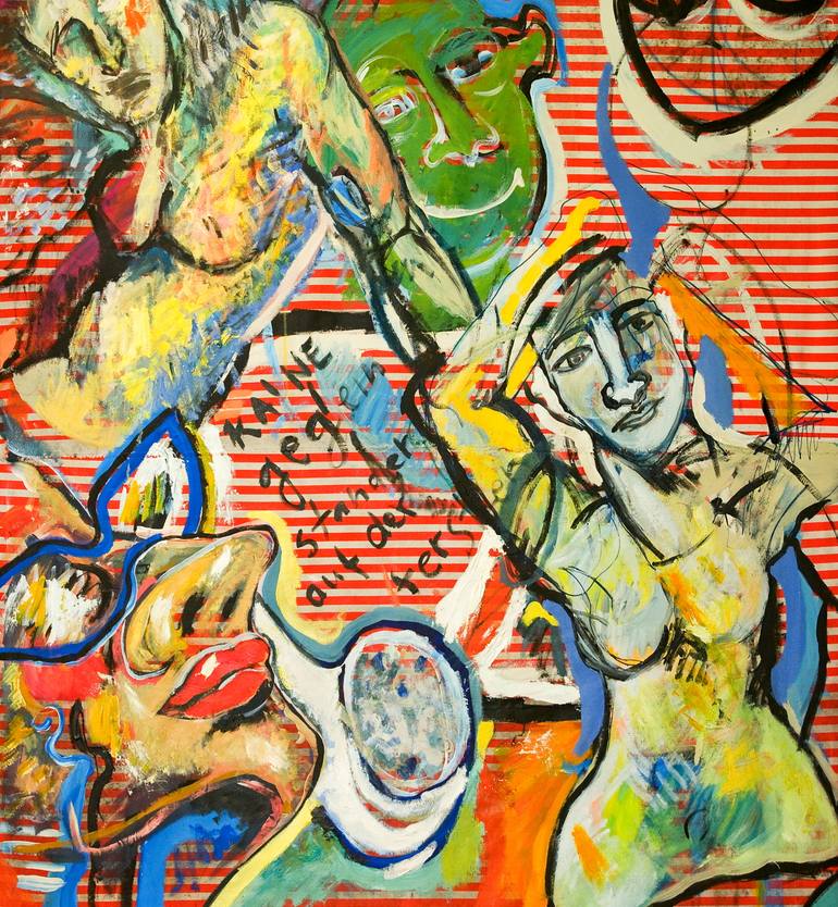 The painting is inspired by the great revolution ,of reopening Museums in Belgrade. the contemporary art had no Museums but private galleries and shop up the compemorary art the exhibiotion READING ROOM GALLERY-SOHO=LONDON 12.Septembar 2013.