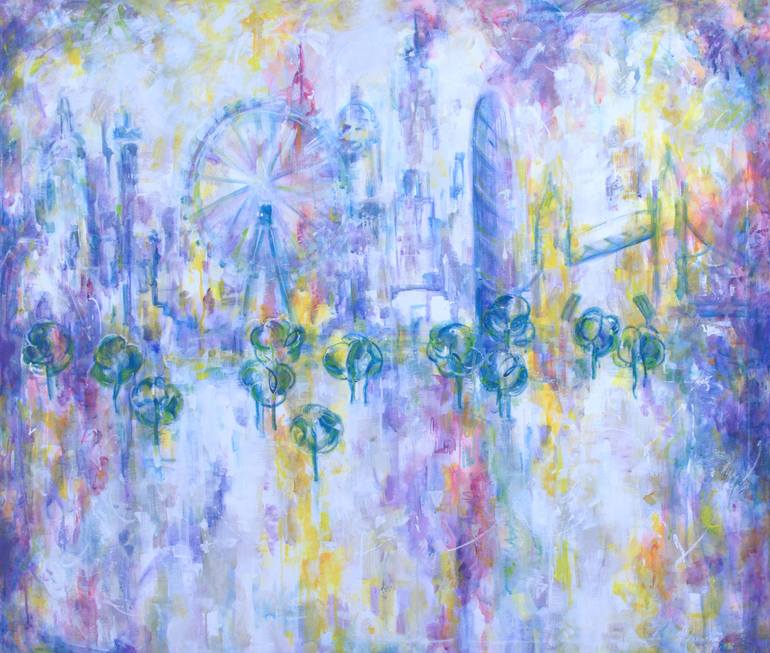 Typical skyline, cityscape of London. This is original painting and it will send with the Certificate of Authenticity. To see additional works by Marcela Levinska – Marilion – take a look at her other website
