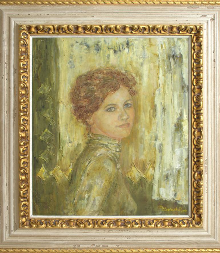 OIL PAINTING „LOOKING BACK“ BY MARCELA LEVINSKÁ – MARILION Original oil painting "LOOKING BACK" on wood fibreboard with relief structures by well known Czech artist Marcela Levinská - Marilion. Signed lower right, doubled frame, excellent condition. This is original portrait, oil panting for sale r...