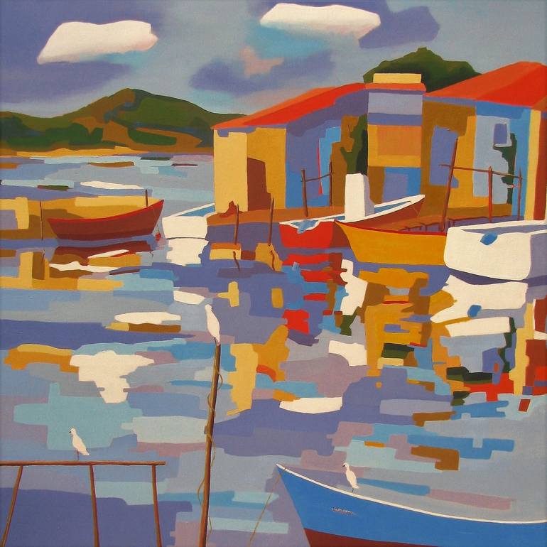 This oil painting conveys the atmosphere of the charming harbor of 'La Pointe Courte' in Sète, one of my favorite themes. It hasn't changed much in centuries with its wooden huts to store the fishing gear, its flat bottomed boats used to transport oysters and the herons who regurlarly visit the pl...