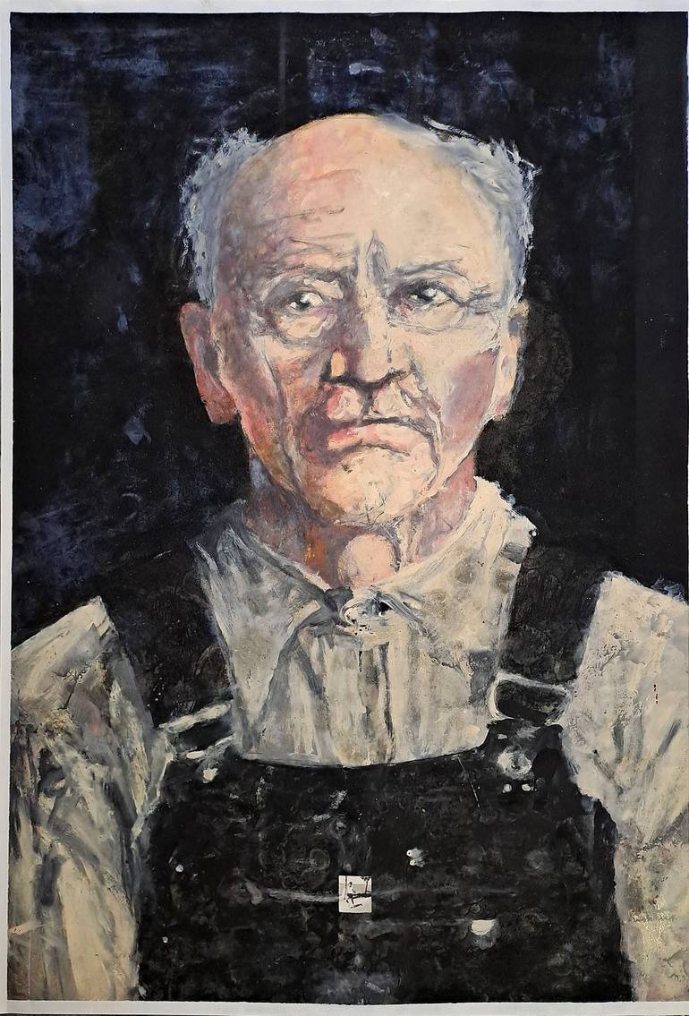 This painting, started in 2009 and rebuilt in2024 with an inclusion of an old photograpky, is connected to "Fictions series" The idea is to establish a relationship between painting and photo as well as a possible story between faces and group of people, hence the title "Fictions". .