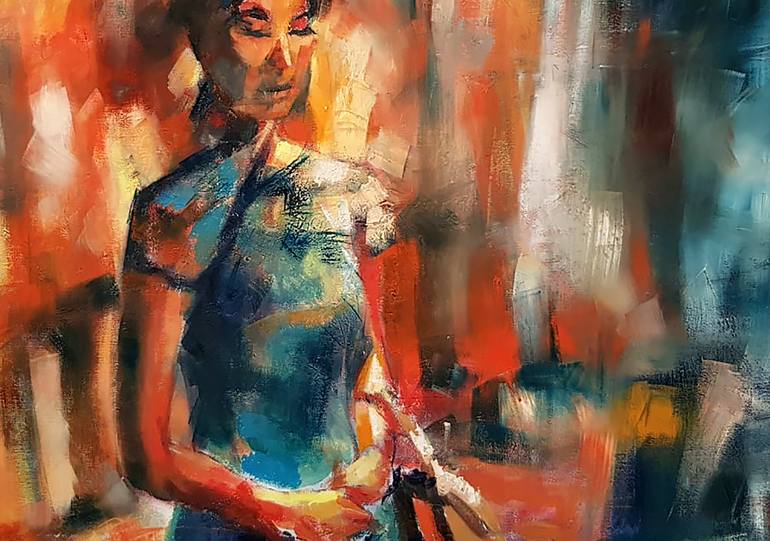 The queen of Saba is a mythological figure told in various books and also in the stories of Jesus famous for her wealth and her search for wisdom. The woman is as if she emerged from the canvas in a whole between colors and lines. the reds the yellows the oranges blend in a perfect union where the f...