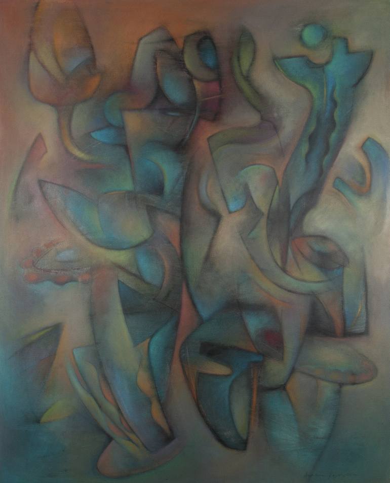Labradorite Bearer by Armen Kojoyian, A abstract expressionist organic abstraction of mixed media painting on canvas 48" x 60"