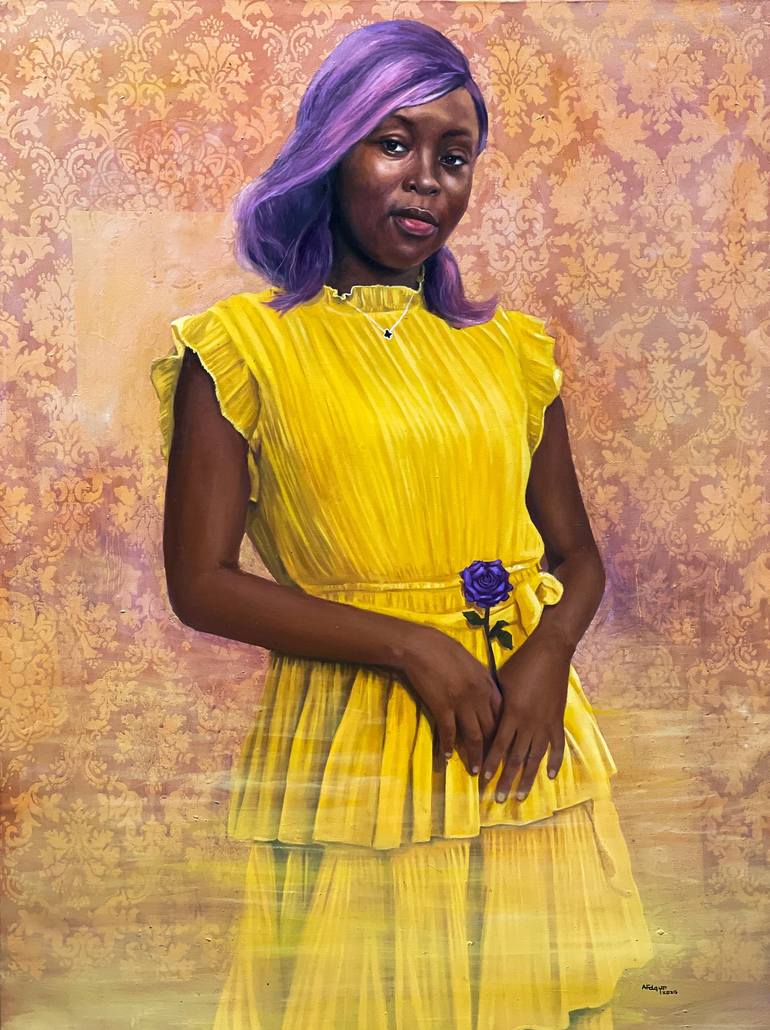 Afolayan Emmanuel, a renowned Nigerian visual artist, has carved a unique path in the world of fine arts. Based in the vibrant city of Lagos, Emmanuel's artistic journey has been nothing short of remarkable. His artistry, deeply rooted in his lived experiences and mentorship, has earned him a special place in the hearts of art enthusiasts. Emmanuel's passion for art was ignited during his formative years, and he decided to further nurture this passion through formal education. He pursued his studies in fine and applied arts at the prestigious Obafemi Awolowo University, where he honed his skills and developed a deep understanding of the nuances of the art world. Through his evocative and thought-provoking art, Afolayan Emmanuel has emerged as a leading figure in the contemporary Nigerian art scene. His work has been exhibited in galleries, both locally and internationally, and collectors from around the world eagerly seek his creations. As he continues to grow and evolve as an artist, Emmanuel's contributions to the world of visual art remain invaluable, leaving an indelible mark on the cultural landscape of Nigeria and beyond. Afolayan Emmanuel's preferred medium of expression is oil paint, and it is through this medium that he weaves his vivid tales on canvas. His art is a reflection of his own life experiences, rendered in exquisite detail, and an exploration of the human condition. Emmanuel's works often use poses and introspective gazes to address profound themes, including self-love, contentment, and selfesteem. His paintings are not merely images on a canvas but windows into the soul, inviting viewers to contemplate the complexities of human emotions.