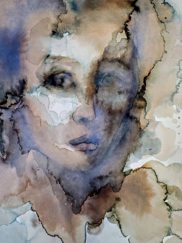 Watercolor , paint, portrait, lady face, figurative, fine art,