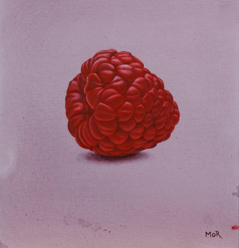 Raspberry painting in acrylic and oil. Underpainting in grisaille with glazes in oil.