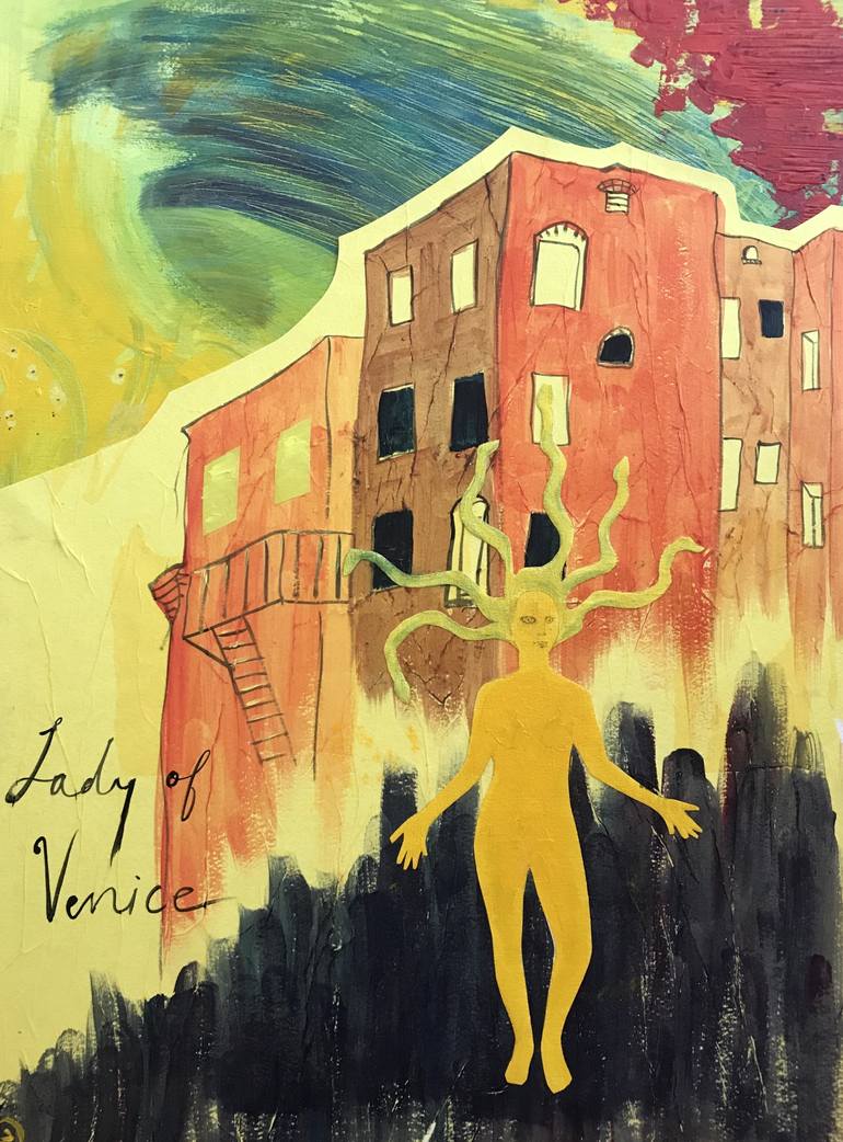 I live on Venice Beach, and there is a whole cast and crew of unusual (to say the least) street characters here. This Lady of Venice is not based on any particular woman I've seen, but an amalgamation of a variety of intense energies walking around on the Boardwalk. A little bit crazy, a little bit ...