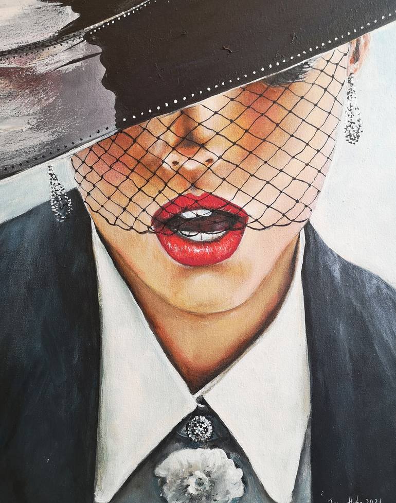 Lady with veil Lady with Veil Painting Original Art Woman Wall Art Acrylic Flower Painting 20.6 x 16.5 by TanyaHubo Materials and technologies. Contemporary works of art are created with quality acrylic paints using a palette knife and brushes. Covered with protective varnish. The sides of the pic...