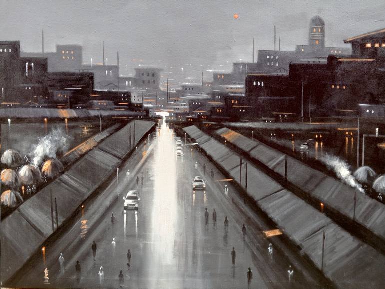 This painting portrays the less affluent part of the city of Lagos – the filthy canal, the endless sea of slums. A story, that needs to be told. This painting, “Lagos Mainland I” here is Makako, a community that has a lot of stories seeking revelation. Here people, the fishermen, live on the marg...