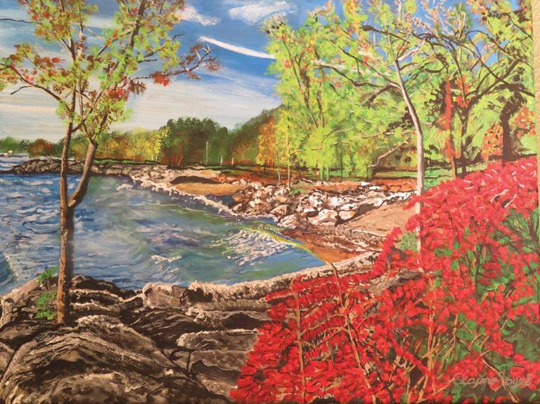 The reference photo for this painting by David Mark, sparked my love for nature images that include water, trees, and flowers. The fact that it’s Lake Ontario is a bonus, as I lived in Toronto (a city on the lake) for 30 years of my life. Original painting. Artist signed in the bottom right corner....