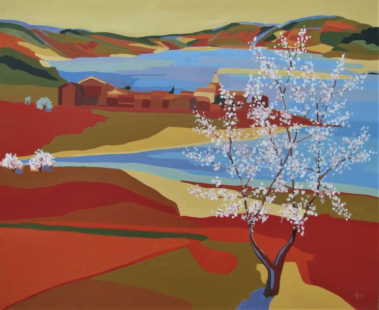 Capture the serene beauty of the South of France with the captivating oil painting "Lake in Southern France''. It depicts the old village of Celles nestled beside lake Salagou in Southern France. The artist masterfully captures the region's unique character, with its red ochre rocks and sparse Medi...