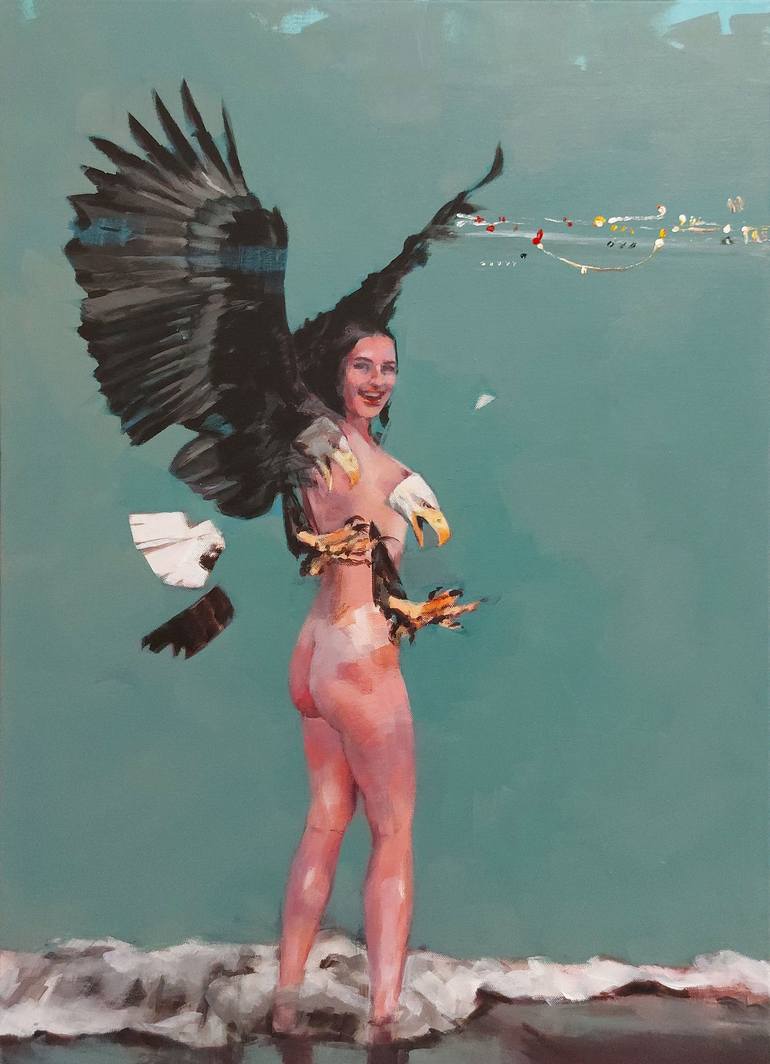 Born in Cagliari, Italy, in 1970. Lives and works in Rome. "A painter is like the sea, it can’t but reflect the Sky" My painting investigates the human figure in relation to the natural environment, focusing on the revelatory quality of this bond through a figurative language that integrates elements of structural tension and dynamic suspension. In my vision, the nude figure is an expression of integrity and individual freedom – a subject that, unburdened by veils or filters, represents the active conquest of one’s own state of being, detached from conditioning and self-censorship. The figures are immersed in natural contexts that vibrate with energy, spaces that host moments of intense manifestation where the scenery acquires an enigmatic and elusive aura, suggesting the realization of something invisible. The work explores the dialectic between the concreteness of paint and the power of the unsaid, placing itself in a dialogue between sensory realism and dreamlike suggestion.