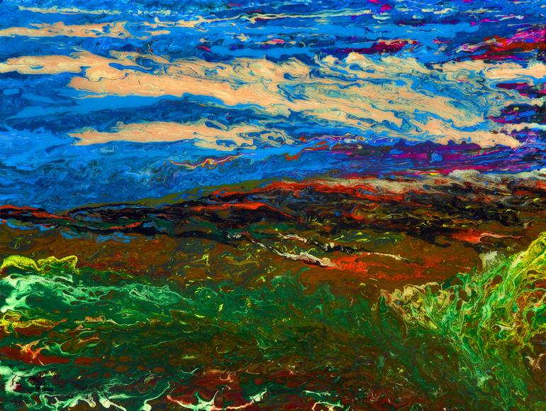This has been sold to Peter near Beziers (SW France) - with two others (All At Sea II and Sea at Dusk). He saw Rooftops over Pouzolles and want a few for himself. Loosely based on Exmoor, but is an abstract. Tried to create some raw bright colours from a rather 'green' and desolate place. Some impre...
