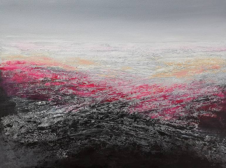 Textured abstract oil landscape on a gallery quality canvas. Contemporary art, individual and unique. Moody landscape, Aesthetic colors. Size: 23,6"x31,5" (60x80 см) The 1,8 cm sides are painted white. Exact colors may vary depending on monitor and lighting. If you have any questions about this pai...
