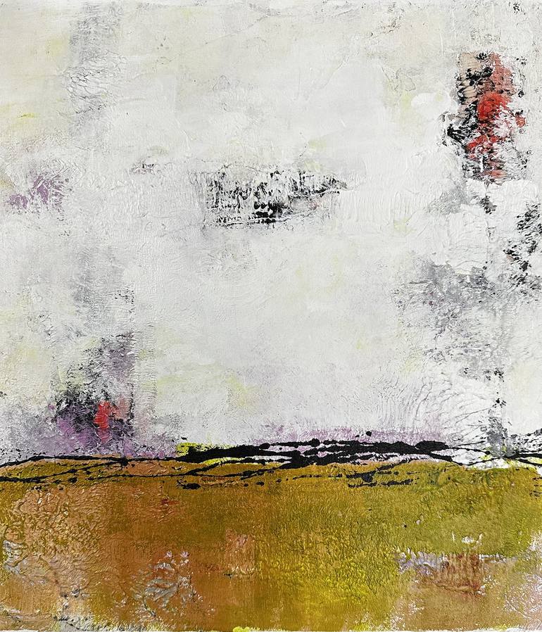 My landscapes leave much to your imagination. Hints at things in the sky, the horizon and the land, all there for you to make of them what you want. There is a good amount of texture in this piece, as I layered acrylic paint on thick so each subsequent layer would respond differently to the new ...