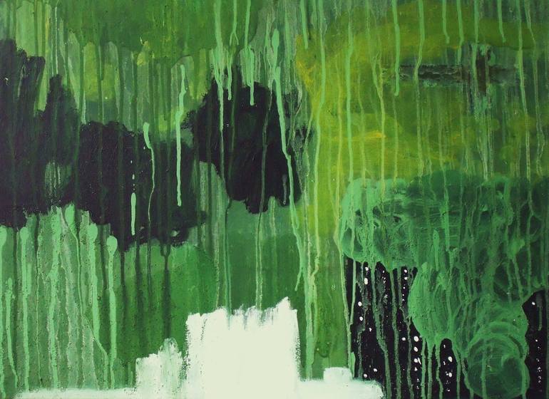abstract landscape The colours are full of deepness and freshness. For me its like a painting for meditation and feel grounded The fluent colors are a symbol for refreshing and transporting energy Mixed media with enamel,gesso,acrylic and sand on canvas. The canvas is stretched on a wooden wedge fr...