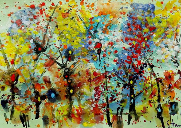 watercolor,acrylic,ink,on paper,mixed media,unframed