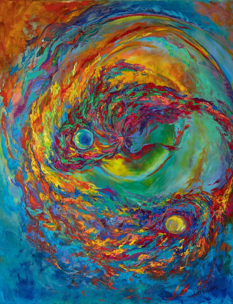 This original abstract painting was created using a mixed media technique with both acrylics and oils, applied with brush and palette knife. The combination of smooth strokes and bold accents gives the work a dynamic yet harmonious character. The artwork explores the idea of balance and contrast, ma...