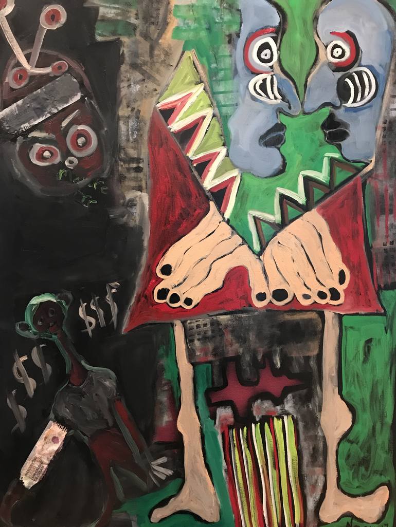 Ginny Nagy was born in 1951 and grew up in a working-class railroad town in central New Jersey, United States. Her father was an art engraver, until his employer moved away, and her mother was busy caring for seven children. The home was tumultuous and often frightening to a shy young girl. Ginny’s early love of painting was suppressed by a social culture that directed girls to only a few pursuits: homemaking, teaching, nursing, or secretarial work. She began raising her own children at 18, soon without a man in the household, and sometimes wayward, she took jobs wherever she could. When her life stabilized years later, she began pursuing her passion, first in sculpture and then oil painting. She sought short-term classes, such as at Johnson Atelier in New Jersey and the local community college, but her lessons came through her own study of artists such as Neel, Toulouse-Lautrec, Modigliani, Soutine, and Schiele. She painted because it relieved pain and brought moments of self-fulfillment. To her initial surprise, her mysterious expressions of human trouble and turmoil found admirers on the internet. Her paintings were selling through internet exposure, and local art enthusiasts were inviting her to participate in their displays, some commercial and many presented by non-profit organizations. She gladly donated paintings to family and friends and to some charitable entities. One of her paintings, Portrait of Zoila, appeared in the background of a popular television show, Jeff Lewis’s Bravo TV series “Flipping Out.” These early successes motivated Ginny to undertake a greater body of work, and to try different genre. Without formal education, Ginny leaves to others the task of describing the art she produces. Some have called it edgy. Her canvases certainly exude emotion, frequently sad, sometimes psychopathic. She does not set out with the intent of evoking such reactions. Only when one of her paintings amuses has a conscious objective for that painting been displayed. Predominantly, she is simply working with the vibrant colors and shapes that she sees in her surroundings – seeing them in human faces and figures, obviously not a source of security and serenity for her. In her more recent work, the backgrounds too have exposed the turbulence of her world. With few models, she often paints self-portraits, but not of her true appearance. Instead, her self-portraits reflect a range of moods and daily mutations of her self-image.