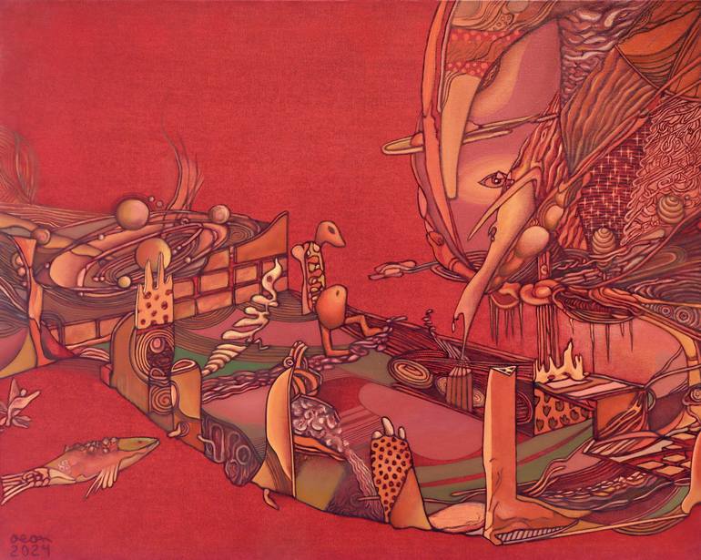The abstract surrealist artist Alexey Adonin transforms painting into an enigma, guided by an intuition that stages works where light—whether pale or intense—both conceals and reveals a key embedded in a reality whose chromatic texture lends it an idealized character. The sensory qualities of color are inseparable and osmotic, enveloping these inscrutable landscapes as if they were the site of an oracle, within which a mystery unfolds, accessible to only a few. As the philosopher Theodor W. Adorno once noted, the most fitting notion for grasping the essence of art from a cognitive perspective is that of an enigma. In Adonin’s work, an enigma indeed exists, and he does not shy away from this mission. (Taken from The Doors Are Open, an article by Gregorio Vigil-Escalera.)
