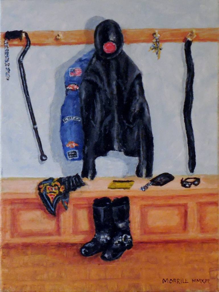 I was born in Maine but grew up in Silvermine, CT where our family lived until I was 14. My love of art was born there and cultivated by some very eccentric but wonderfully artistic and creative neighbors. I had my pick of artists, painters, poets, sculptors and potters. When my mother noticed my interest I was tutored at the Silvermine Guild of Art. My first set of paints was given to me by one of the artists in the neighborhood. As a kid growing up from toddler to teen I absorbed a lot. Many times I would see some of the actors – in costume – rehearsing lines for their next project. Being interested I asked questions about stage and movie makeup and developed an interest in Hollywood monster movie makeup. Some of my fondest memories are of some of the Halloween monsters I created. By creating these monsters with makeup, I learned about texture, coloring, and facial expressions and use these ideas in my current artwork. While growing up I delivered papers, shoveled snow and cared for pets of my neighbors while they were away. During that time I observed them making art (even watching through their studio windows while I mowed their lawns). Much of what I learned while trying to paint as they did remains with me to this day. After graduating high school, I studied painting and sculpture at SVA – The School of Visual Arts. My early work was strongly influenced by the social climate of the sixties and early seventies. I painted large dramatic canvases that made statements but generated little income that would come from commissioned portraits, architectural scapes, rock n’ roll illustrations and large dramatic birds of prey. When my first child was born, I began working as a caretaker at a manor in Westchester County for a steady income. Even though I closed my studio and packed away my brushes and chisels, in a way I was still involved in art by creating gardens and designing and building several projects around the estate. Many years and experiences would follow that job and those choices. When I put my first love on the shelf, I told myself I will start again next month – next year- someday. Now after thirty plus years it is finally someday. The joys and pains of those years inspire me to paint images of daily life – the interaction of people to each other and situations they find themselves in during their everyday experiences. I now paint with a strength and maturity that drives me to constantly create new work.