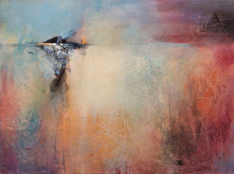 This is an original abstract on a gallery wrapped canvas. There are 10+ layers of acrylic paint and washes that give the piece nuance, depth and interest. The edges are painted black and it is wired ready to hang. Each of my paintings has a clear gloss UV protective finish coat.