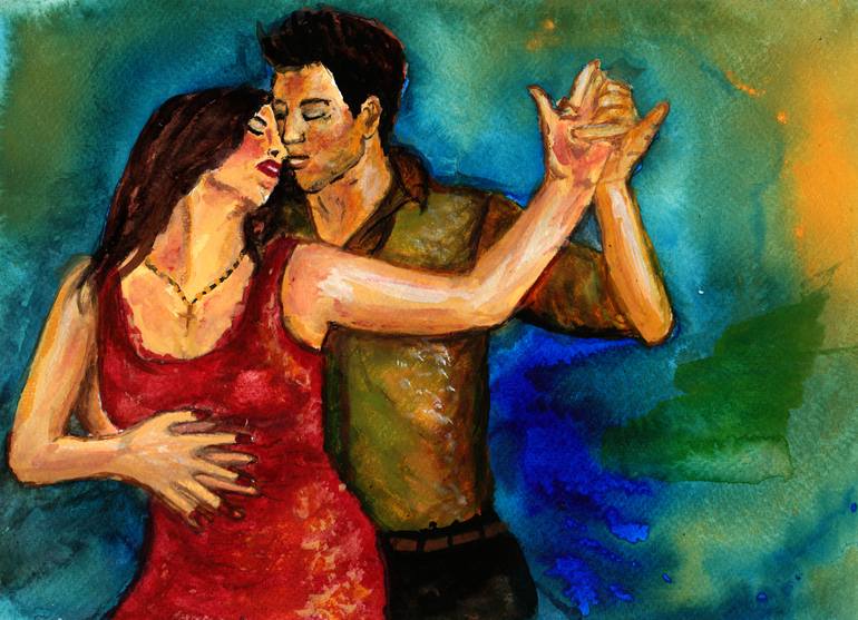 Two tango dancers take to the stage for a sizzling embrace under the dance floor lights. Inspired by the passion and flare of tango dancing.