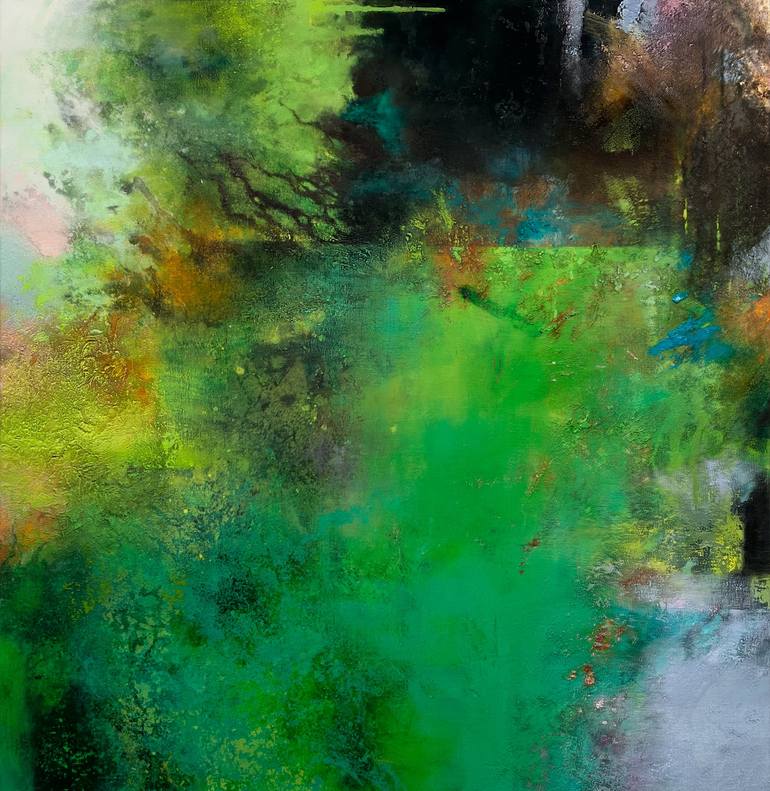 Painting is framed with aluminum profile. Ready to hang. Canvas is heavy linen. This work is highly textured in some areas.