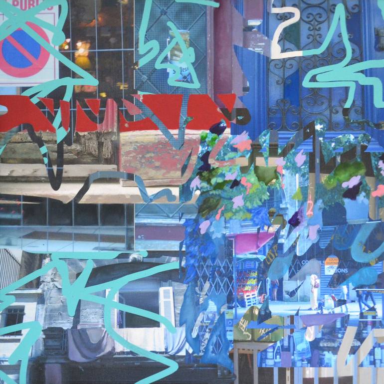 This is one of a series of mixed-media works that uses photography, digital drawing and oil painting. It explores the fragments, patterns and energy one may experience within a city. In this piece I have focused on glimpses of doors, windows and grids that we may attempt to peer through.