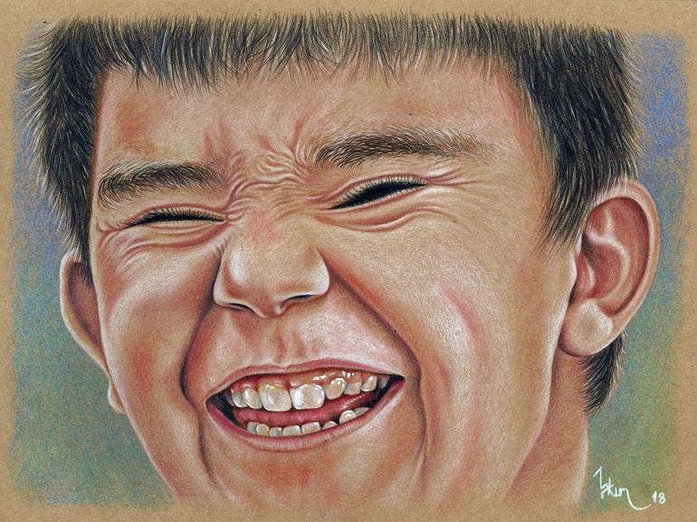 Laughing boy. He must be smiling and feeling his gaze in his inner world.
