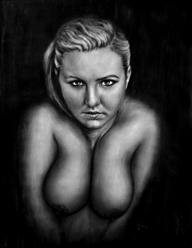 Lauren topless portrait, painted with oil over canvas A2, 2016-12-28