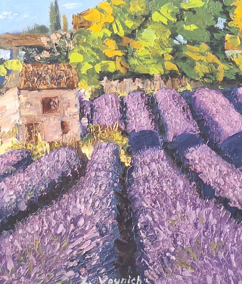 Lavender farm fields. Painting in oil on hardboard. Picture painted with palette knife. Texture 3D. Original handmade. Size:12"×10" inches (30×25 cm). If you want to order this painting in a diferent size or write on canvas, please contact me via curator. I will write it in any size. The pic...