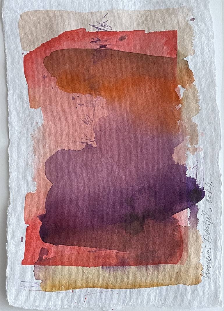 This artwork is painted with acrylics and watercolor on cotton handmade paper. The size of paper is about 21x30 cm and the full measure is given with passepartout. It comes packed in a box.