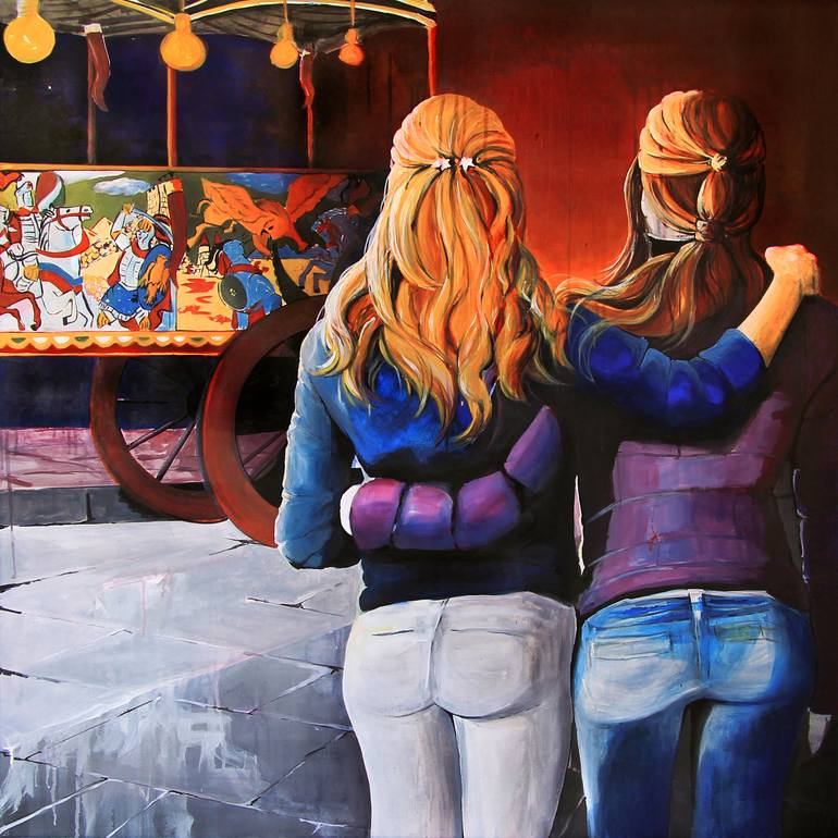 ENG 'Two is possible!?' This slogan phrase sums up the logic that underlies their artistic activity. The adoption of the "common signature" GaeTano & Valentina, indicates a rejection of the distinction of roles and confirms the universality of an act. The key factor of their artistic production is to be found in their contemporary world. The main objective is to analyze the human condition, such as social change, cultural and moral. Their figurative works that take voice from informal backgrounds come to light by combining different techniques, such as for acrylic and spray. Two is possible!? Tale frase-slogan, sintetizza al meglio la logica che sta alla base della loro attività artistica. L’adozione della "firma comune" GaeTano & Valentina, indica un rifiuto della distinzione dei ruoli e sancisce l’universalità di un agire. Le loro opere, figurativi a pigmento acrilico, appaiono come non luoghi dall'aspetto metafisico in cui dinamiche emotive vengono rappresentate come attimi di pièces teatrali.