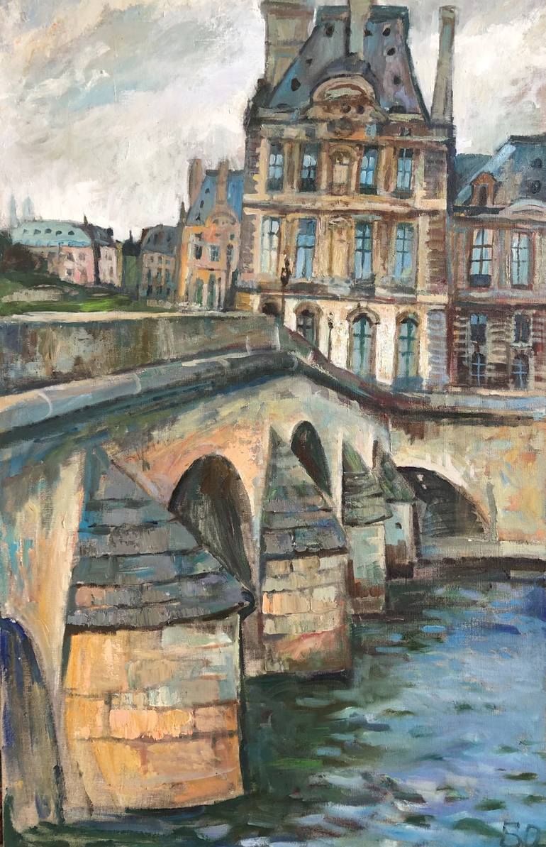 Original oil painting on canvas depicting one of the main places of Paris. Louvre. The famous French museum. I often walk in this place and I am mesmerizing by this view. The magnificent architecture, the bridge, the Seine river - this is the soul of Paris.