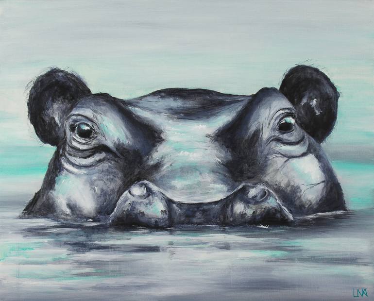 Voici "Le bain" œuvre de l'artiste Helena Monniello. Elle représente un portrait animalier d'un hippopotame se baignant dans l'eau et observant les alentours. L'artiste a voulu représenter un animal calme alors que c'est un animal féroce habituellement. Elle souhaite transmettre sa sensibilité. L'œu...