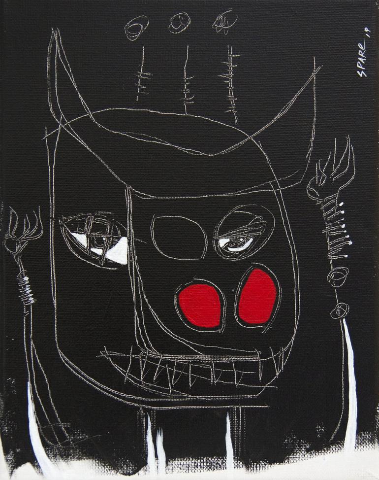 The masked Taurus. The black and white series of July 2019, #01/20. Original fine art painting. Acrylic on canvas 2019. 20X25X0,625cm, 8X10X5/8inch. Part of the artist collection. Le taureau masqué La série noir et blanc de juillet 2019 #01/20. Peinture, oeuvre d’art originale. Acrylique sur caneva...