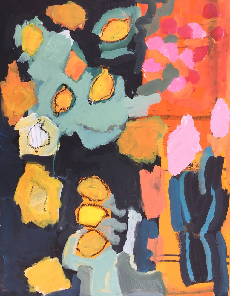 Celebrating the succesfull harvesting of the lemons. This event takes place every year in Menton. Fête du Citron. This artwork is a traditional oil/acrylic-painting - paintet on paper. It is framed with 3mm mount board (white) and a wooden, classic frame (silver). This work measures h98cm x w77cm (...