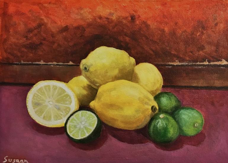 This is a still life painting that comes framed (18W x 14.4H x 0.7D inch including frame), is varnished and is ready to hang. Pictures shown are of the actual frame. I enjoy oil painting and the bright yellow and green colors of the lemons and limes inspired me to do a still life painting. This ...