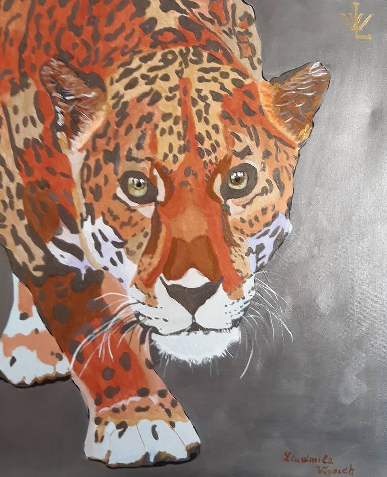 leopard Painting. The picture is painted with acrylics of metal colors gold, bronze, silver. The background of the picture is painted with silver paint. This picture will look beautiful in a kid's room, living room. The sides of the painting are painted. Size:29"×24"(73×60cm) . If you want me to o...