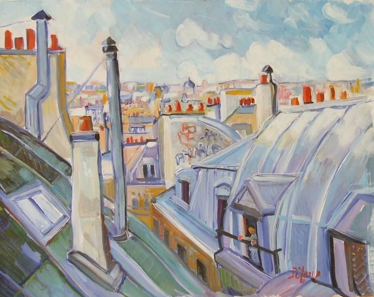 Les forets de cheminées parisiennes sont typiques et emblématiques de cette ville. Elles sont inspirées de nombreux peintres. Toile exécutée de mémoire sur une toile de lin. . ...