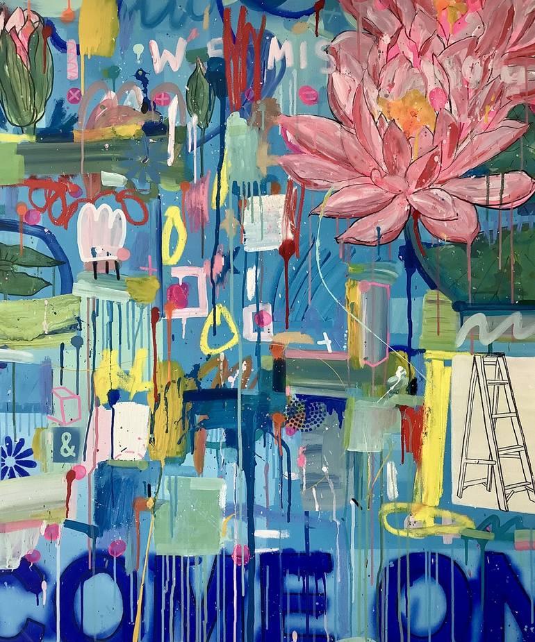 The flowers in this piece are inspired by 'Flowering Water lilies' by Ohara Shōson . I have lived in - Scotland, The Netherlands, Japan, Hungary, & Germany. Since 2005 I have lived in countries where English was not the first language. The experience of living in cities where I (initially) couldn't...