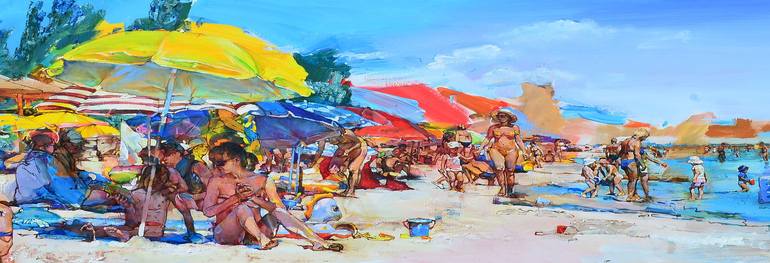 The painting depicts the Sea of Azov near Genichesk. The painting uses the impasto technique, a vivid example of Ukrainian impressionism. Professional oil paints, texture, and acrylic imprimatur are used in this work. The author's idea is to depict the colorful life of a resort town on the Azov coas...