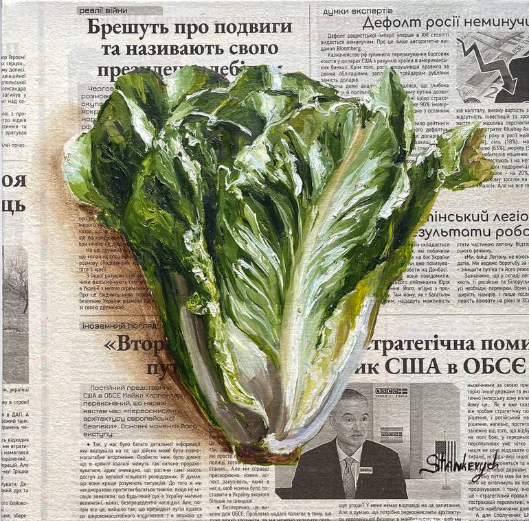 Lettuce by Julia Stankevych oil on canvas (on newpaper) 12x12"(30x30 cm)