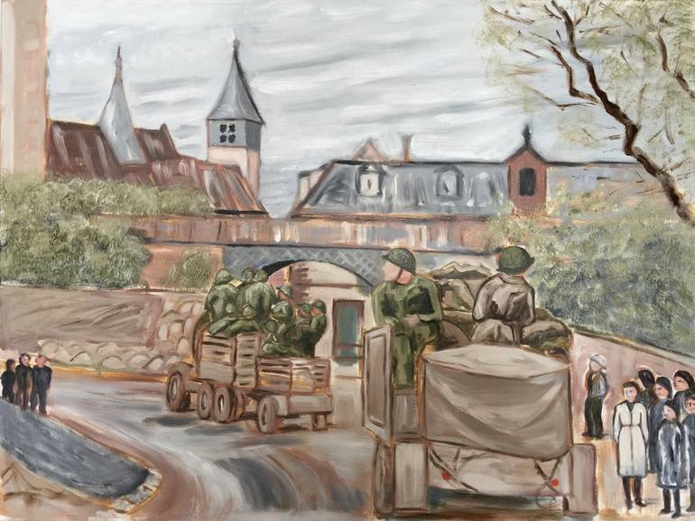 My World War 2 paintings are inspired by the color slides my grandfather took during his service in an EVAC unit from 1944-45 following behindGeneral George Patton. Major Reinhold Ericson's unit was one of the first into the Dachau concentration camp and after the triage he treated mostly Typhus pat...