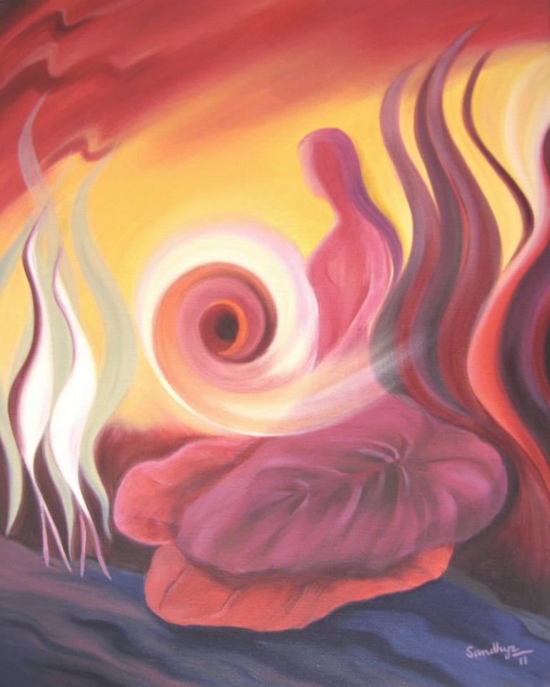 Representation of “life”, in classical Indian Thought, “life” made up of five elements (“Panch Tatva”) viz Sky, Earth, Air, Water and Fire. The work symbolizes living beings harmoniously merging with the five elements in the backdrop. A painting is to appeal to visual senses. This one is also a cata...