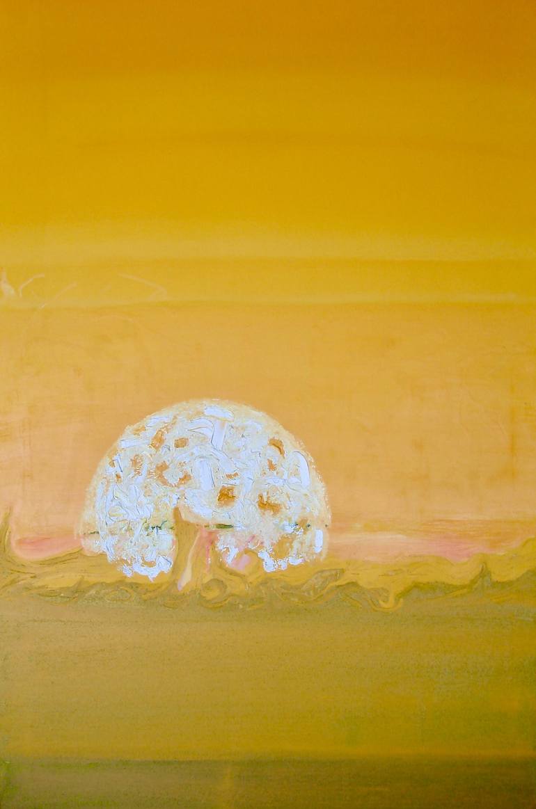 The third of 7 monochromatic canvases portraying my experience in a time of intense personal and collective change. "I dreamed I saw the silver space ships flying In the yellow haze of the sun. There were children crying and colors flying All around the chosen ones. All in a dream, all in a dream ...