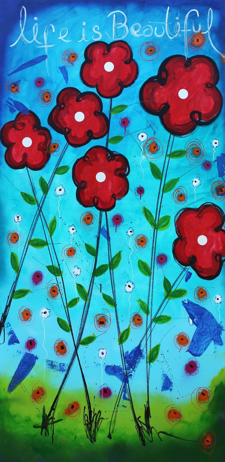 This painting is a happy expression of JOY. A reminder that Life is beautiful no matter what is happening in our lives. Even if you are having a hard day you just have to take a look to this painting and start feeling better. The simplicity and full vibration of these colors and the magic of having...