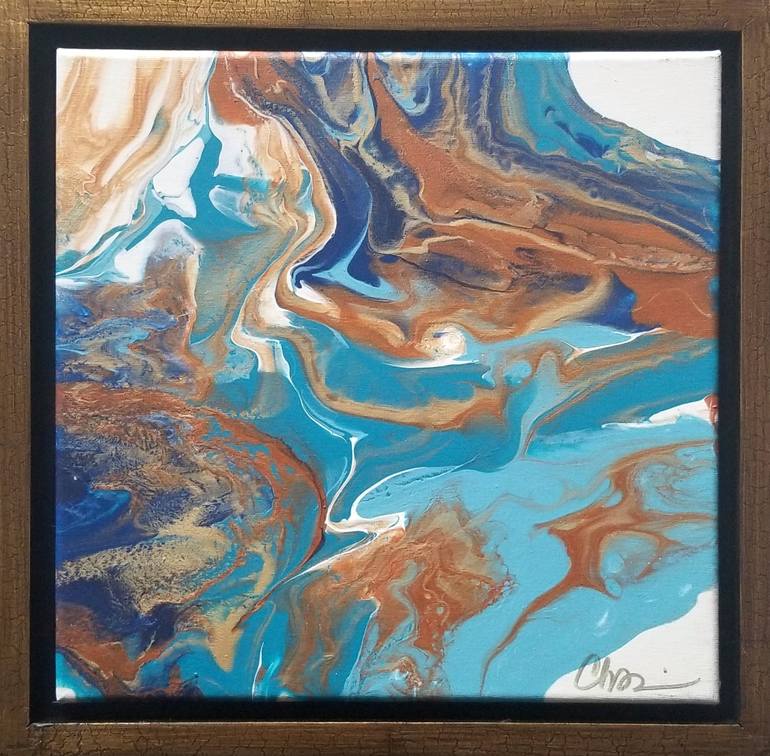 The artist created this painting with mediums that create motion in the paint. A metallic paint was used which created some beautiful texture. By moving the painting around to create the perfect composition, while an uncontrolled movement of the paint. Pi is, by definition, an irrational number...